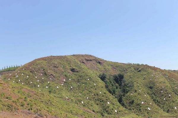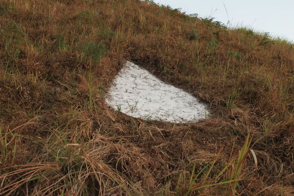 Using white-painted natural formations and strategic placement across the green landscape, the artwork evoked the symbolism of water drops, both as a celebration of life and a warning against its scarcity. White Drops was made in collaboration with local residents and artists.