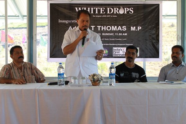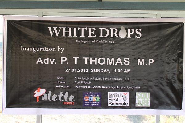 As part of the UN-designated International Year of Water Cooperation, and in alignment with the first edition of the Kochi-Muziris Biennale (2012), Palette People International Art Foundation curated and presented White Drops — the largest land art installation in India at the time. Executed on a hillside in Vagamon, Kerala, this monumental project was designed to raise awareness about water conservation and ecological sustainability in the Western Ghats, one of the most sensitive biodiversity hotspots in the world.
